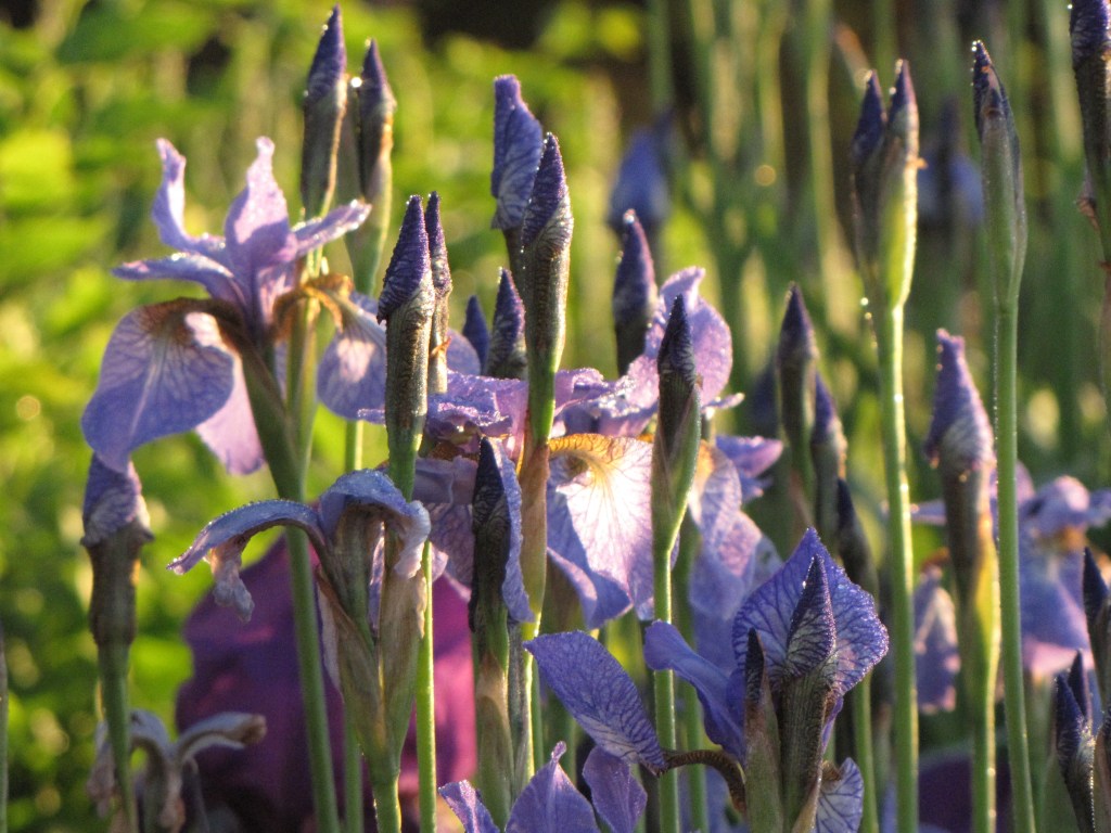 These misty sunrise lit Iris’s were snapped while I paused in awe on a summer morning many years ago.